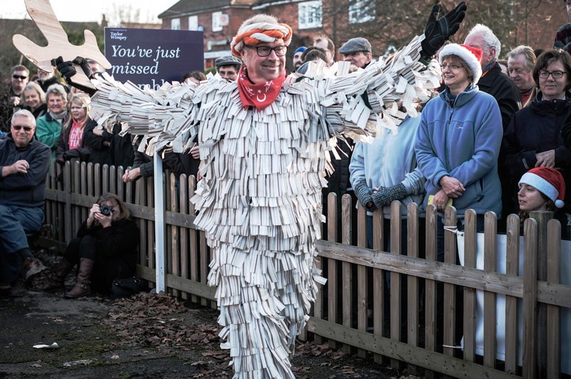 The ancient tradition of the Crookham Mummers Play is to collect money on behalf of the Phyllis Tuckwell Hospice.